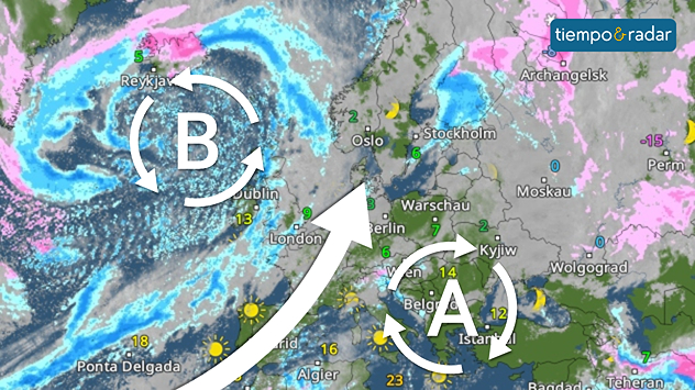 Para que vuelva el invierno, las depresiones del Atlántico tendrían que intercambiar sus posiciones con las altas presiones sobre Europa del Este. Esto dejaría vía libre al aire polar procedente del norte.