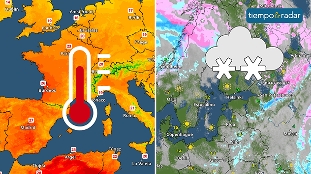 En los países del suroeste y del centro del continente predominan temperaturas muy suaves y desde los 18 hasta los 25 grados o más, mientras que en el norte de Europa aún sigue el invierno.