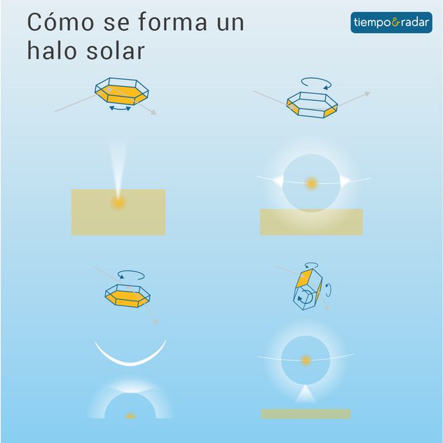 Según cómo se produzca la incidencia de los rayos solares con las partículas de hielo, el resultado del halo será diferente.