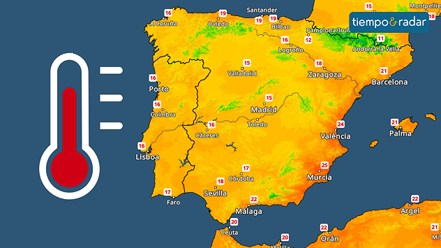 El radar de temperatura muestra valores que alcanzarán los 25 grados en la Región de Murcia, superando la veintena en todo el litoral del Mediterráneo. No obstante, la suavidad será generalizada.