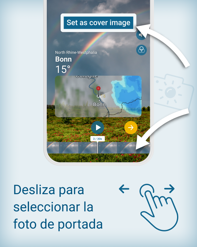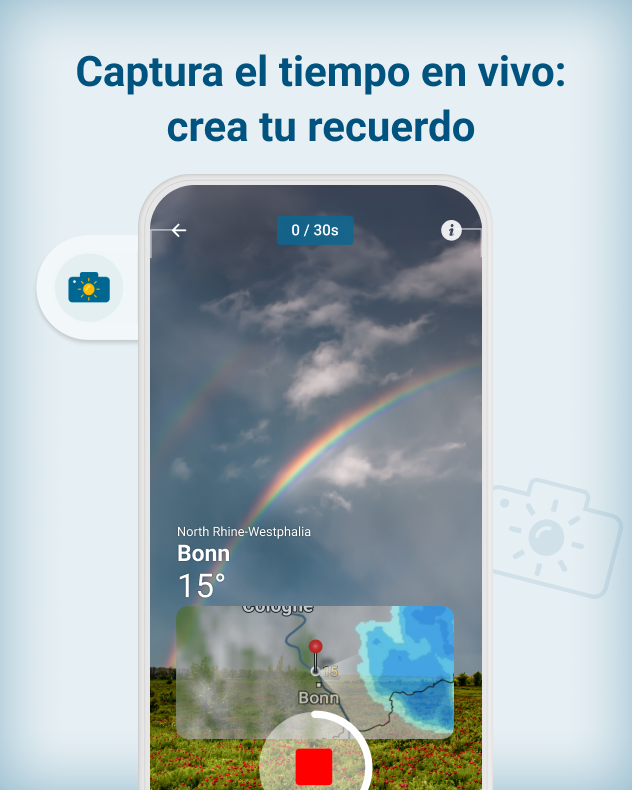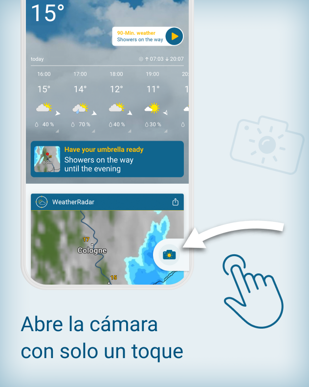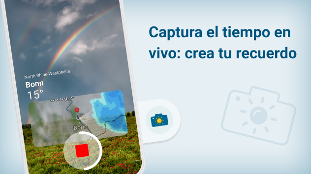 Con la nueva función de la app Tiempo & Radar podrás guardar esos momentos para siempre - rápido, sencillo y directamente desde la app. El lugar, la hora y la información del tiempo se añade automáticamente, tú no tienes que hacer nada