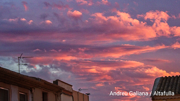 Nubes altas teñidas al atardecer de tonos rojizos en el cielo de Tarragona.